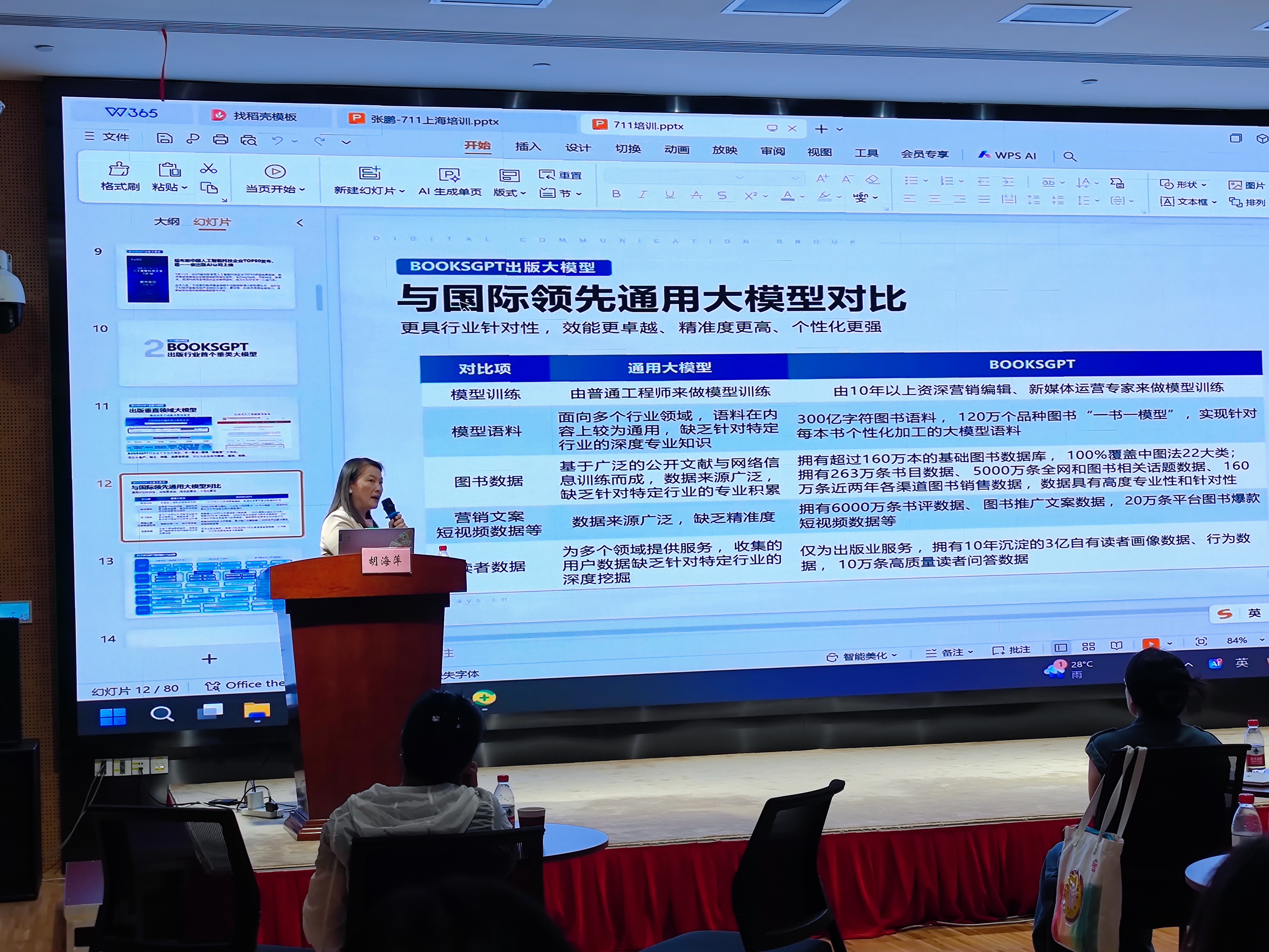 胡海萍介绍了数传集团针对出版行业自行研发的“BOOKSGPT”大模型工具。BOOKSGPT由10年以上资深出版从业者参与训练,依托300亿字图书语料等原始数据训练集,实现了AIGC内容生成、图书数字化加工、基于读者画像的精准服务等功能。