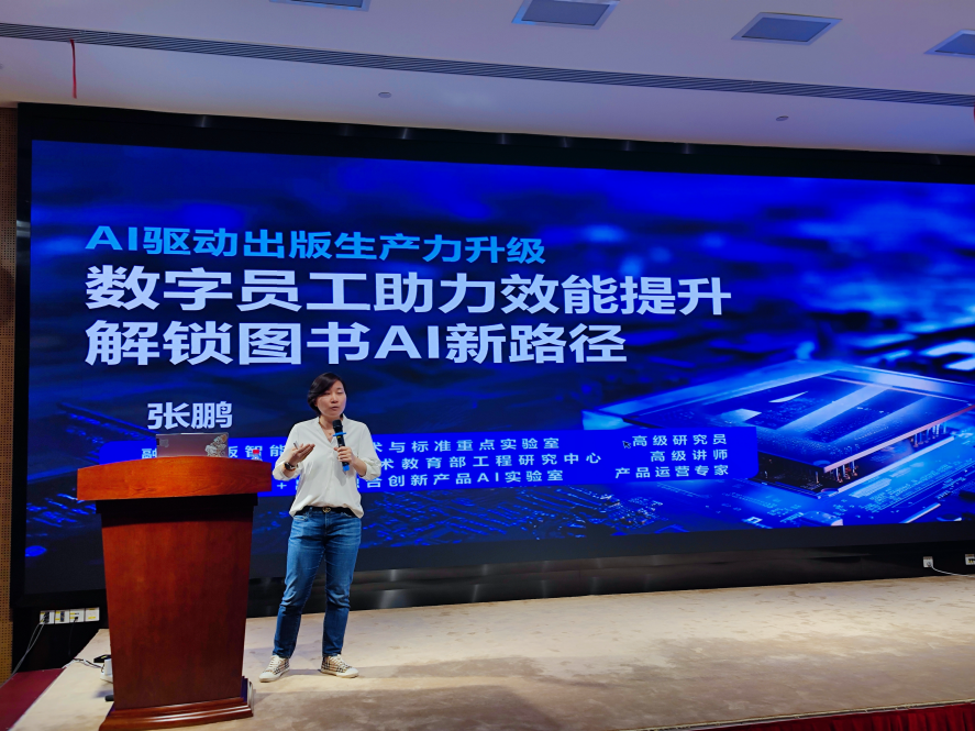 张鹏以“AI驱动出版生产力升级:数字员工助力效能提升,解锁图书AI新路径”为题,深入解读AI如何赋能出版行业,并分享了多家出版社的AI应用实践。针对AI时代的出版企业发展,她剖析了内容安全、版权归属、数据主权等深层挑战,提出向AI借力,建立内容生产与分发开放创新联盟的应对策略。