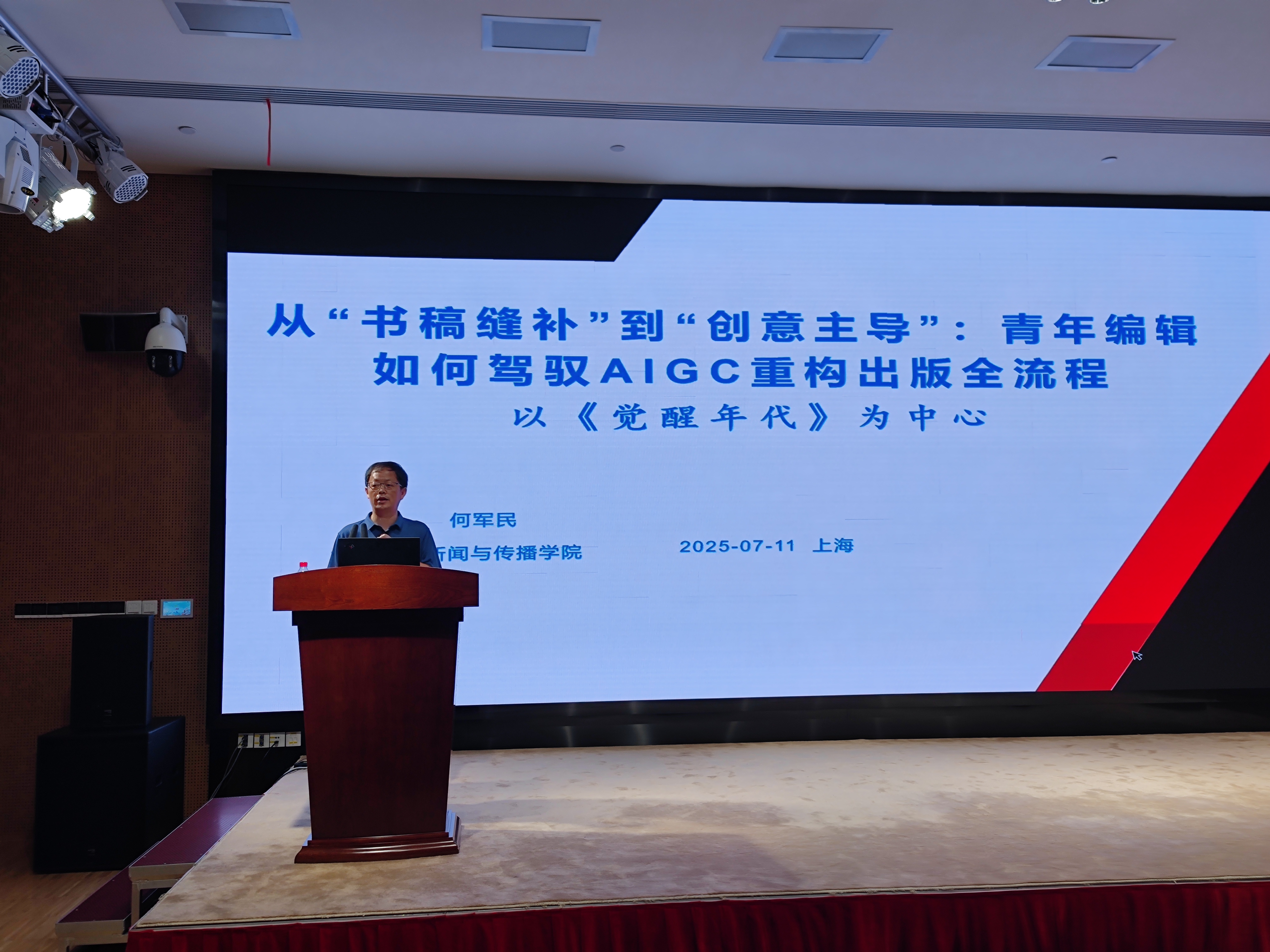 何军民教授以“从‘书稿缝补’到‘创意主导’——青年编辑如何驾驭AIGC重构出版全流程”为主题,通过《觉醒年代》的出版实践为核心案例,系统解析了生成式人工智能在图书出版全流程中的具体应用。他指出,AIGC深度介入出版各环节,从选题策划、内容创作、编辑加工到传播推广,助力出版流程从经验驱动迈向人机协同新范式,青年编辑应当更专注于“政治导向把控、文化价值挖掘、读者需求洞察”等核心职能,真正实现从“书稿加工者”到“出版全流程主导者”的角色升级。
