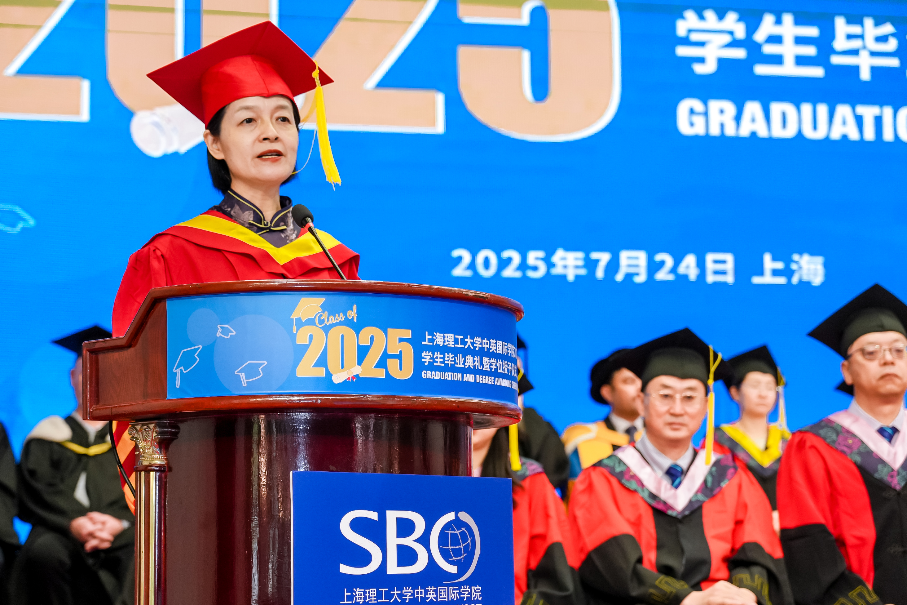 副校长、中英国际学院院长蔡永莲以“启新程·链世界·创未来”为题,为即将踏上人生新征程的同学们上了大学时代的“最后一课”。她代表学校向圆满完成本科阶段学习的同学们表示诚挚的祝贺和美好的祝愿,并向一直为同学们成长倾注心血、无私支持的教师们和家长们致以深深的敬意。她表示,中英国际学院始终坚持“责任领导力、创业与创新、文化同理”三大核心育人理念,同学们见证了学院不断提升国际化办学实力与育人成效,学院也为同学们在此期间的拼搏与蜕变鼓掌喝彩。蔡永莲提出三点殷切希望:一是“启新程”——把握“时”“势”脉搏,以人文情怀锚定未来航向;二是“链世界”——拓展全球视野,做连接世界、共创未来的使者;三是“创未来”——践行“知行合一”,勇当“新质生产力”的弄潮儿。明年是永利集团304am官方入口建校120周年,也是中英国际学院建院20周年,学校诚挚毕业生们明年重返母校,共庆荣光。