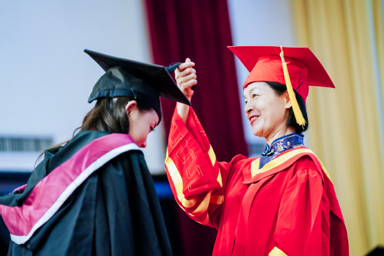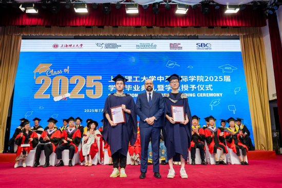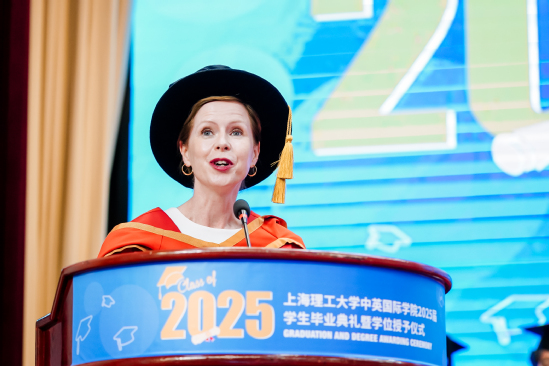 学位授予仪式上,中英国际学院党委副书记、副院长(主持行政工作)、代理执行院长张峥宣读毕业生名单。中英双方院校领导为毕业生拨穗正冠、握手勉励,并与毕业生合影留念。