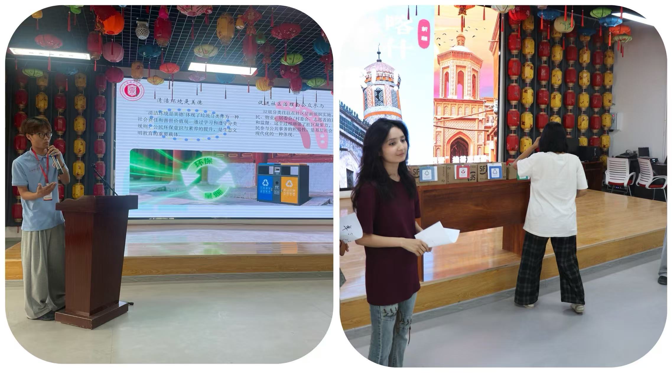 实践团队怀揣 “绘就艾德莱斯新喀什” 的绿色愿景,巧妙将国家通用语言文字推广与生态文明教育相融合,通过一堂生动的 “给垃圾找对‘家’” 垃圾分类知识课及趣味互动游戏,为当地村民普及环保理念,为美丽乡村建设添砖加瓦。活动现场,志愿者们率先践行环保理念,将收集来的废弃快递包装纸箱精心裁剪、拼贴,亲手制作出四色分类模拟垃圾桶,为村民们上了一堂直观的 “变废为宝” 实践课。在志愿者的讲解引导下,村民们热情参与,拿起写有菜叶、塑料瓶、电池、大棒骨、脏纸巾、过期药品等各类垃圾的卡片,认真思考后尝试投入对应的模拟垃圾桶中。整个过程不仅让村民们掌握了垃圾分类知识与技巧,更在互动中加深了对环保理念的理解,让绿色生活意识悄然扎根。