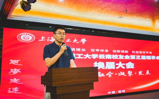 1982级热流专业校友杨惠生对母校的信任、各位校友的支持表示衷心感谢,承诺将带领新一届理事会全体成员,秉承校友会服务宗旨,恪尽职守、积极作为,为云南校友发展搭建广阔平台,为母校和云南的协同发展贡献新力量。云南生源、2016级机械设计专业校友沈星超分享了在母校的成长经历,表达了对母校感恩之情以及加入云南校友会的欣喜与期待。他表示,将继续传承母校优良传统,在岗位上努力拼搏,不辜负母校的培养。