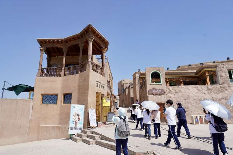 行走在喀什古城的街道上,上海学子在千年街巷的建筑肌理与非遗传承的烟火气息中,深度解码西域文化与中原文化交流的历史脉络。在喀什大学,来自上海的20余名师生与喀什大学的师生围坐在一起,展开交流。