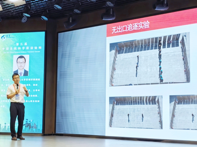 房志明应邀作题为“人群对抗动力学中的稳态与集体行为”的青年学者专题报告。他介绍了智慧应急处置团队开展的一系列受控的“追逃”式行人动力学实验,以及构建的一套从微观到系统层面的分析框架,其发现为理解对抗环境中的人群动力学提供了全新的理论视角,也为发展超越传统速度范式、能够充分利用并引导运动不确定性与集体行为的安全韧性系统提供了科学依据。