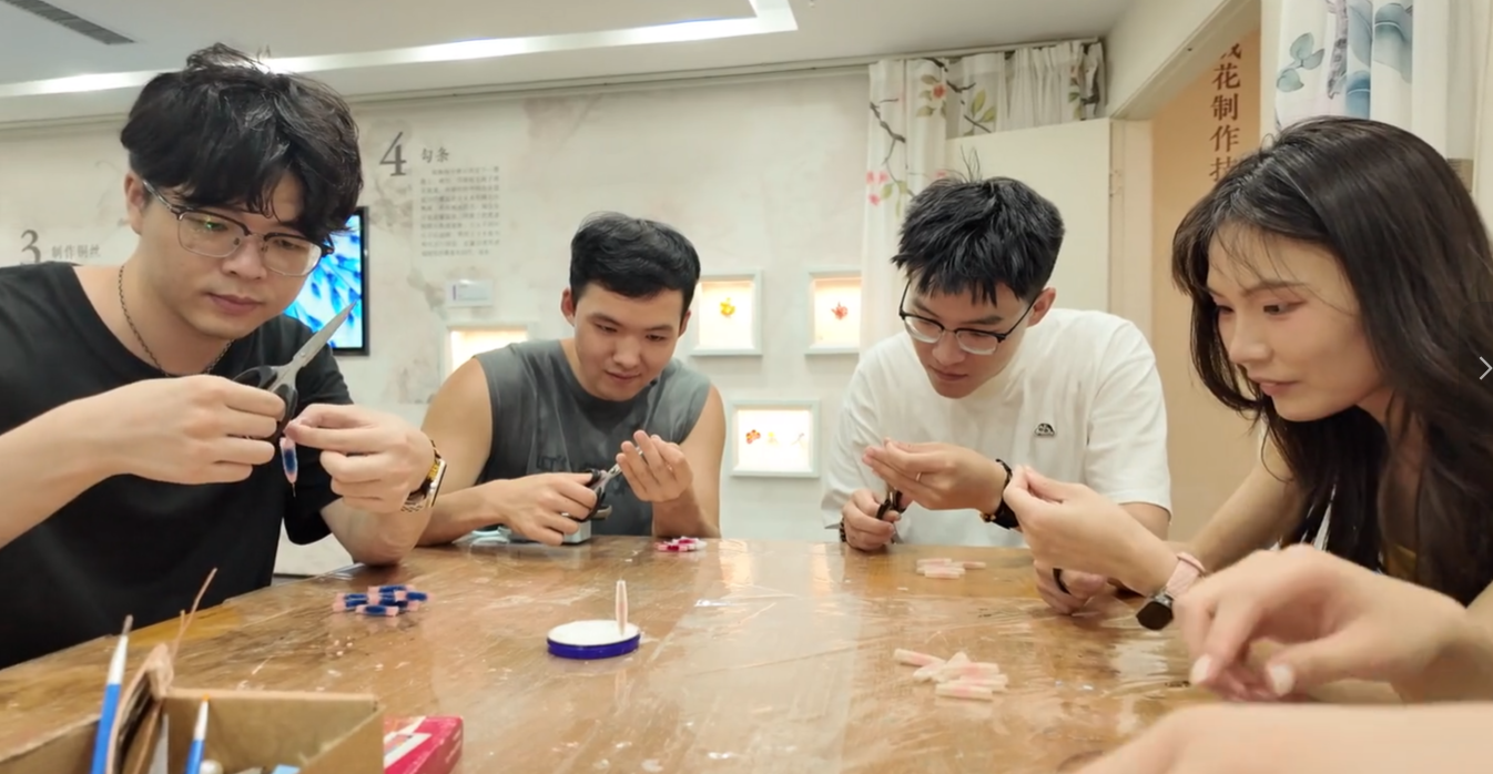 八月初,学院社会实践团队走进古都南京的一处静谧工坊,开启了为期三天的“非遗薪火”绒花制作体验之旅。在柔和的灯光下,90后非遗传承人李老师指尖轻捻,一抹嫣红悄然绽放。她从古老的染丝技法教起,如何提取植物染料,怎样控制水温与时间;再到“勾条”的巧劲与“打尖”的精准,每一个动作都似在低语,传递着跨越千年的工艺密码。同学们围坐案前,蚕丝在指尖缠绕、铜丝在掌心弯曲。渐渐地,零散的丝线在一次次“传花”中渐次成型,最终化作一枚枚栩栩如生的绒花胸针——梅瓣纤柔,秋蝉轻盈,每一件都凝结着时光与专注。