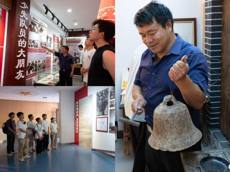 “咚、咚、咚,敲三声,这在以前代表着上课铃。”张玉滚校长在时代楷模展厅演示着二十余斤重的老旧铜钟如何敲醒孩子们上课的热情。“扁担窄窄挑起山乡的未来,板凳宽宽稳住孩子们的心”,那段陡峭的山路里、那根磨破的扁担上,那坚守深山24年的岁月里,他改变了山里娃的命运,托起了大山的希望,让团队成员深受触动。“情怀与责任”、“务实与坚守”、“勤奋”、“自信”,张玉滚校长用这些关键词为团队成员上了一趟生动的党课,为团队成员的青春奋斗注入了强劲动力,也指明了前行的方向。