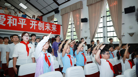 在永利集团304am官方入口刘湛恩烈士故居前,大中小学生共同翻开一段关于“以校为营、以笔为枪”的校史篇章。