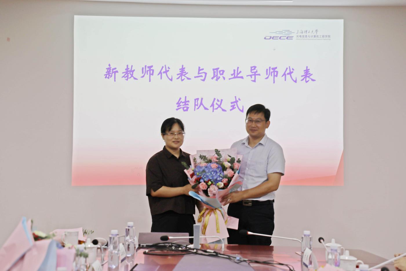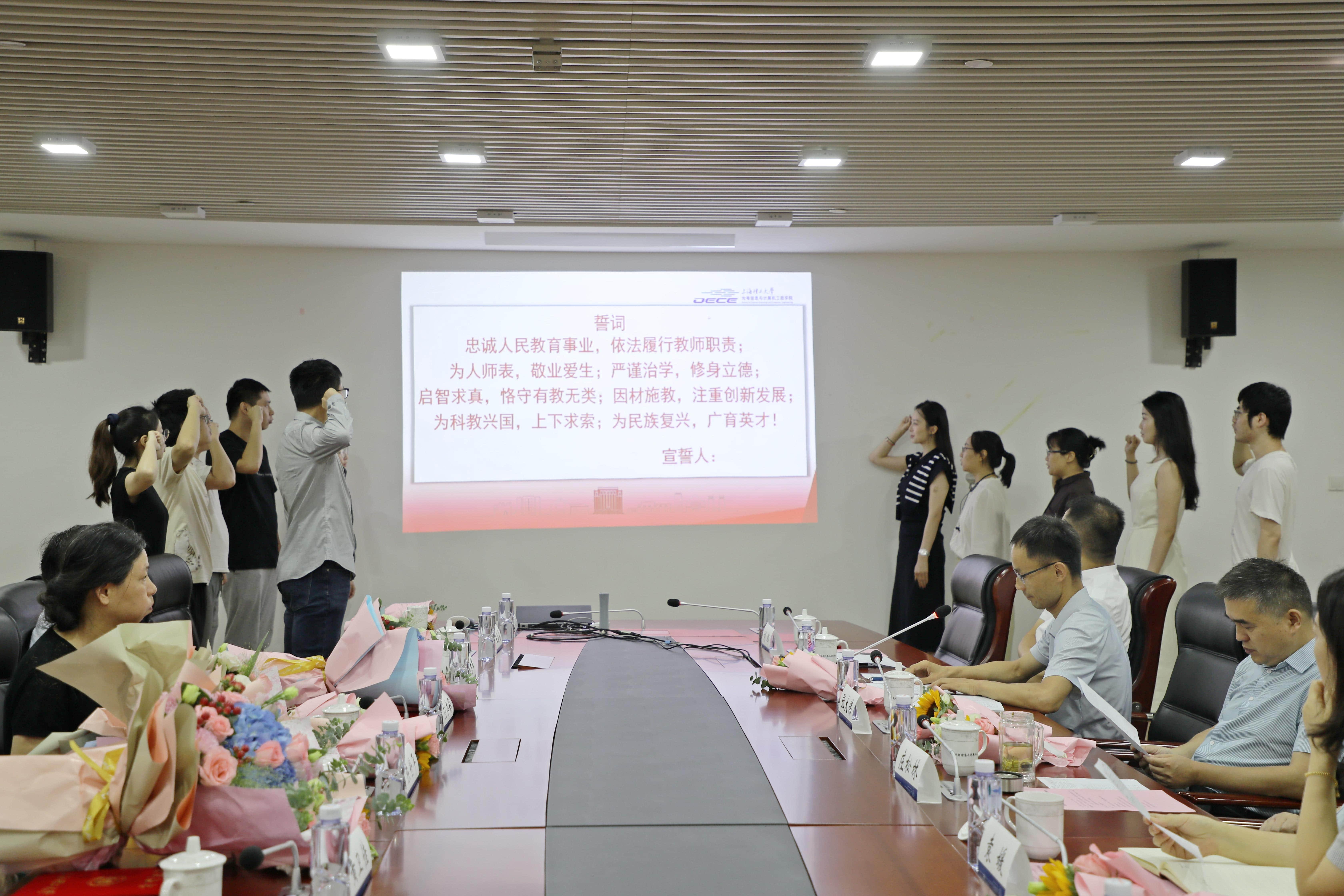 学院为新进教师举行了入职宣誓仪式和与职业导师结队仪式。新进教师高举右拳、庄严宣誓,铮铮誓言,既是对教育事业的郑重承诺,也是对教育家精神的接力传承。新进教师代表王晶晶向职业导师代表冯吉军献花,通过导师与新教师结对,旨在实现教育精神的薪火相传,让青年教师更快融入学院发展大局,更快提升教学科研能力,更快成长为兼具理想信念与专业素养的立德树人生力军。