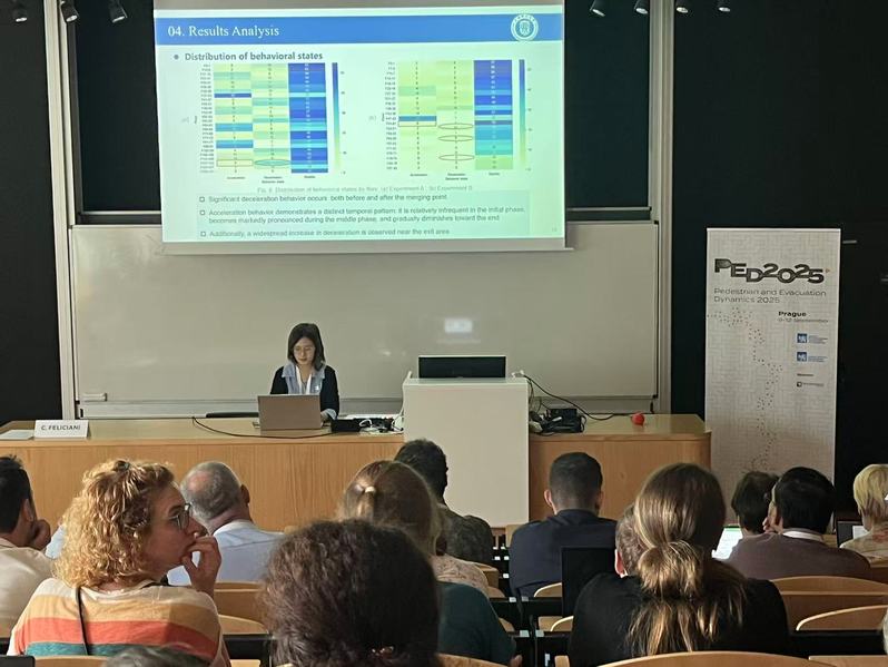 PED会议是行人交通与疏散动力学领域的重要国际学术平台,每两年举办一次,聚焦行人行为建模、疏散仿真及公共安全等前沿议题,汇聚全球专家学者分享最新研究成果,推动该领域理论与应用协同发展。PED2025在捷克理工大学召开,来自全球20几个国家和地区的138余名研究工作者参会。管理学院师生全程参与会议各项活动,系统展示了在智慧应急管理领域的创新研究。
