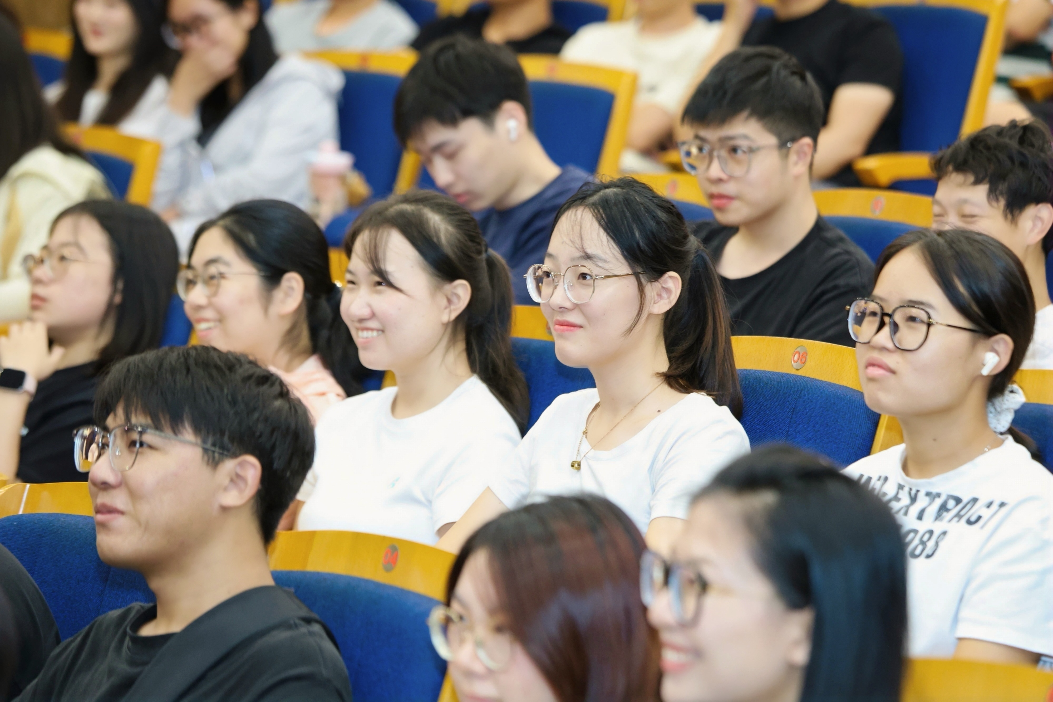 朱新远为新生们讲授第一课。朱校长以“赓续红色血脉,勇担时代使命”为题,详细阐述了学校的发展历史,办学中的红色血脉。他以自身的科研故事为例,鼓励新生们怀爱国之心、立报国之志、增强国之能。接着他向新生们介绍了学校的研究生教育概况,强调要培养“卓越工程创新人才” ,重服务强贡献,打造上海市“3+6”产业体系的中坚力量。最后,他从人才队伍建设、产教融合实践、研究生激励计划等方面分享学校的办学理念和办学优势,鼓励新生们牢记“信义勤爱 思学志远”的校训精神,秉承“改革引领发展,开放赋能未来”的智慧,以青春之我书写永利集团304am官方入口新的辉煌篇章,为以中国式现代化全面推进强国建设、民族复兴伟业贡献力量!