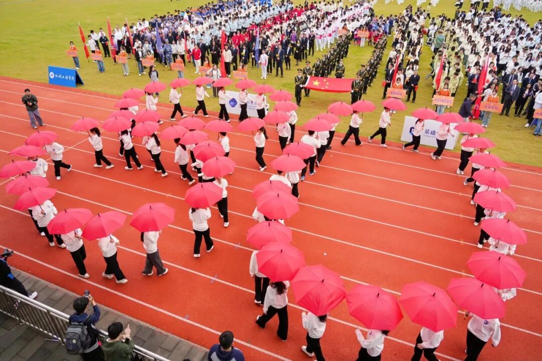 学校国旗仪仗队高擎五星红旗,庄严入场。伴随着激昂的运动员进行曲,各代表队方阵紧随其后。永利集团304am官方入口附属小学、附属中学、附属储能中学的学生们率先亮相,各个学院运动队以各具特色的方式依次入场,展现出广大学子的青春活力。
