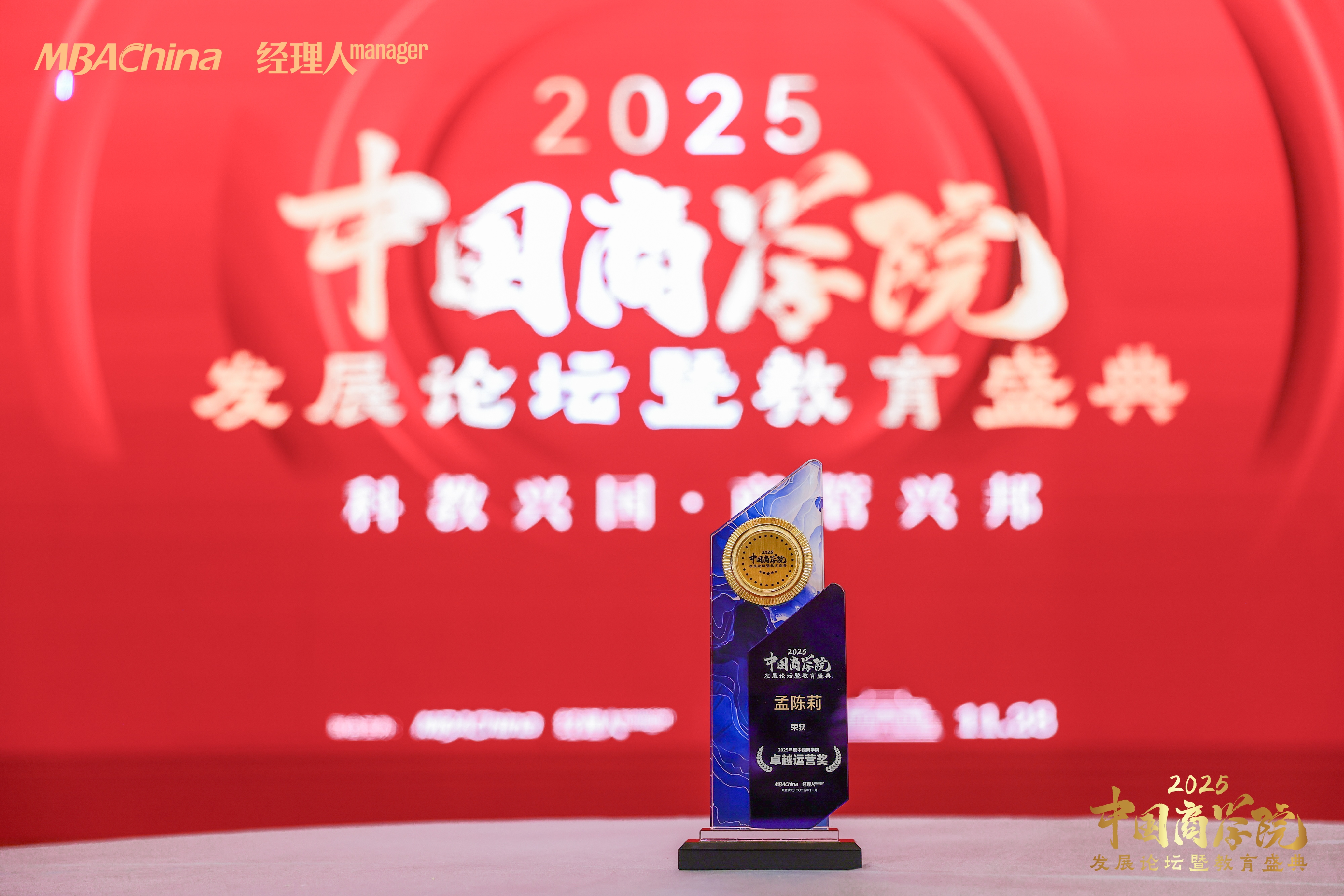 专业学位教育中心综合办公室主任孟陈莉凭借突出工作实绩荣获“2025年度中国商学院卓越运营奖”。