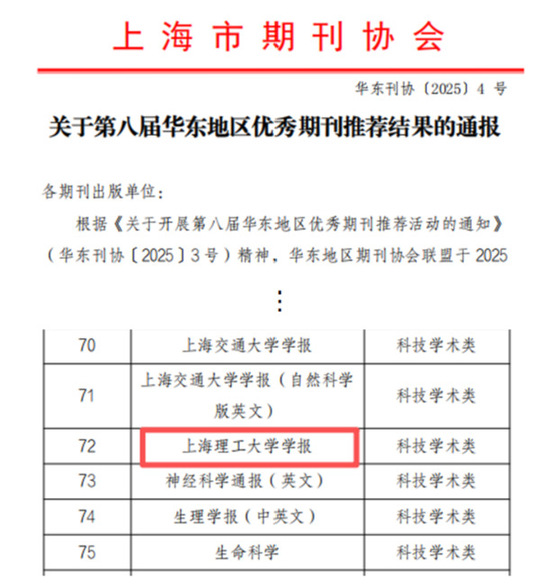 近日,华东地区期刊协会联盟组织开展了第八届华东地区优秀期刊推荐活动。12月5日,经各省(市)期刊协会初评推荐,华东地区优秀期刊评审委员会终评审议通过,上海市共有130种期刊入围第八届华东地区优秀期刊,《永利集团304am官方入口学报》成功入选。