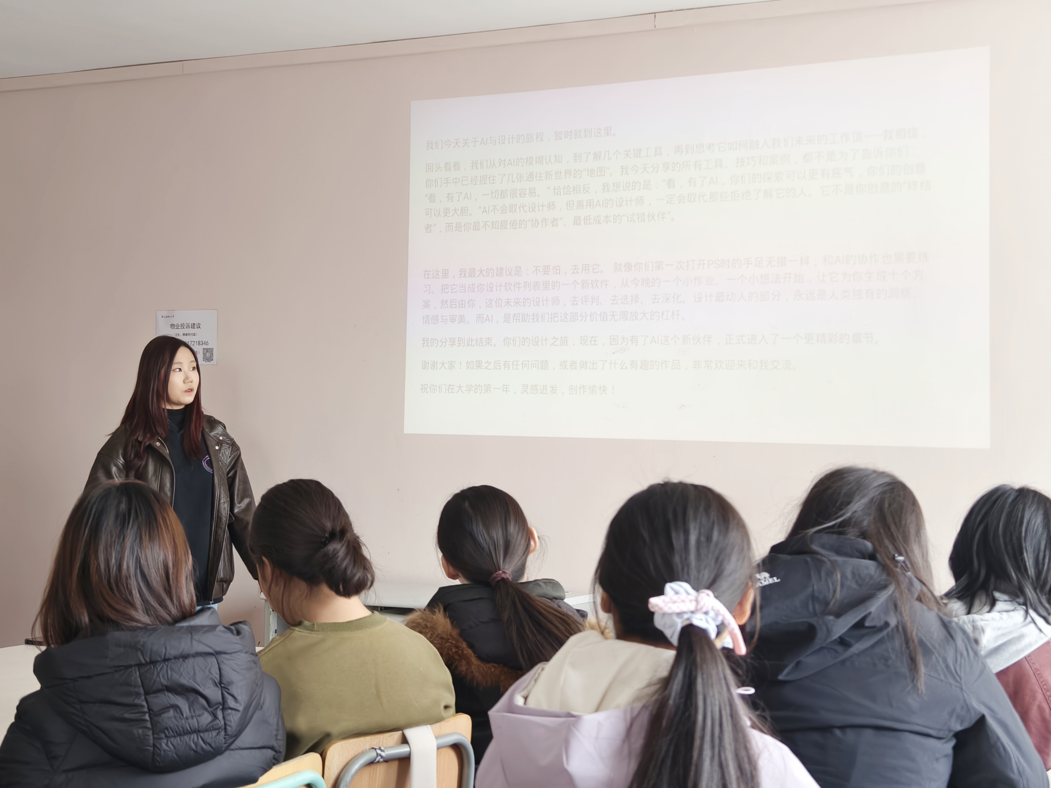 2024级动画专业肖淳睿作主题交流,她聚焦前沿技术,分享了如何利用AI工具赋能海报设计、品牌策划等工作经验。她表示,合理运用AI能显著提升设计效率,从而将更多精力投入到核心知识的学习与钻研中,有效减轻学业压力。本次AI专题经验分享也是工科类本科学生党支部“我为群众做实事”在宿区建设中的一项创新举措。