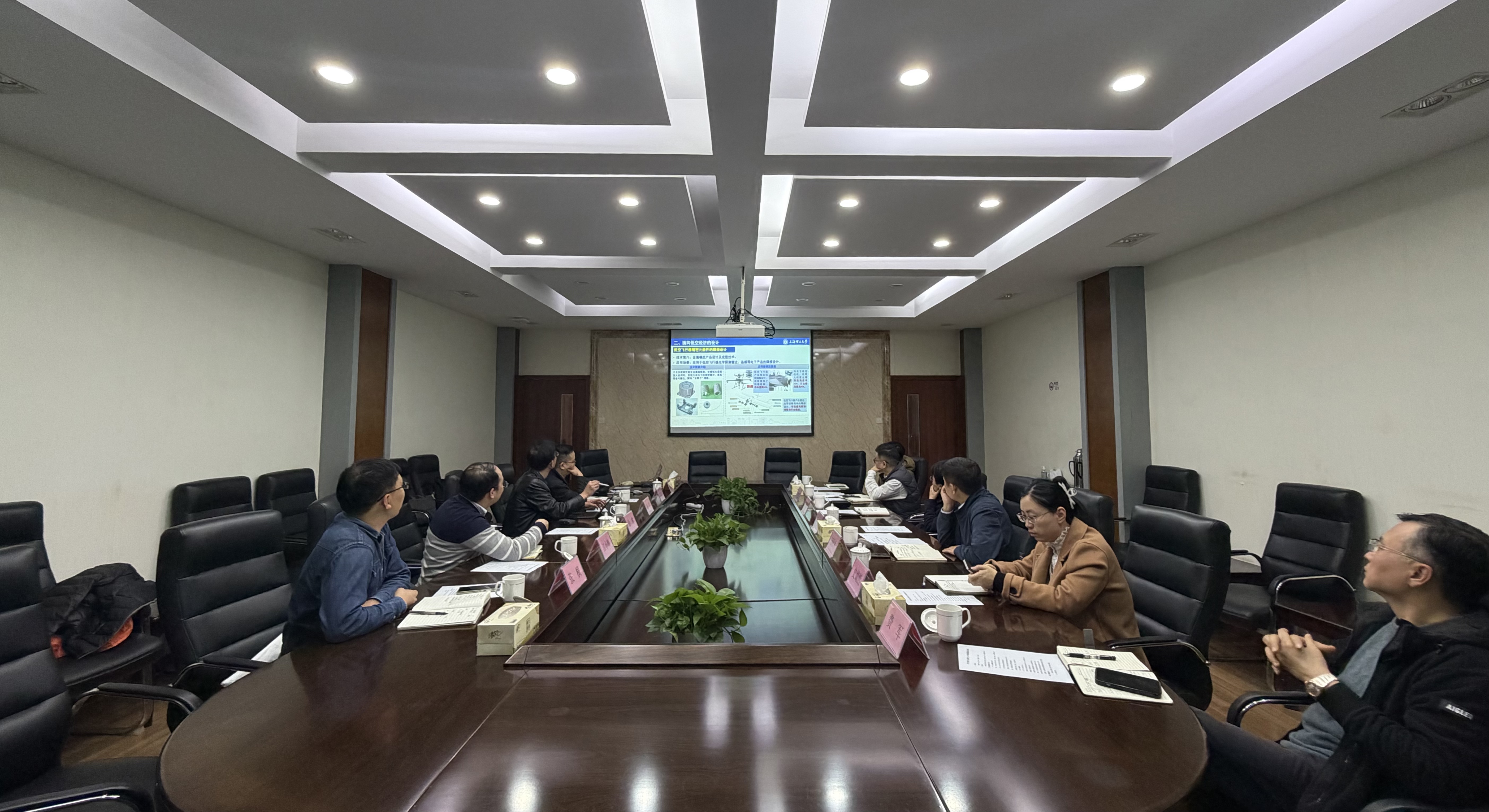 青浦区相关负责人介绍了区域产业发展规划与政策体系,重点分享了青浦新城“1+3”重点区域、北斗与低空经济的特色赛道定位,以及现有的空间载体与配套政策资源。区校双方围绕如何构建更紧密的合作关系进行了探讨,提出未来可通过共建联合中心、深化协同模式等方式,统筹协调资源,促进科技成果高效转化与产业集聚发展。