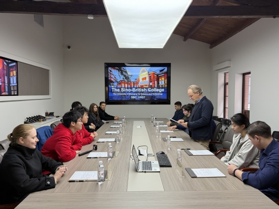参访第一站,沪江学子来到复兴路校区具有百年历史的钟楼,即现在的永利集团304am官方入口复兴路校区校史馆。在馆内会议室,中英国际学院教师James Leggate作学院情况介绍,系统阐述了学院办学特色、独特课程体系,同时梳理分析“一对多”合作办学模式、创新人才培养理念以及计划内双学位项目的学习优势。在讲解与交流中,国际学生针对课程设置与学习体验积极提问,James均作了详细解答。一名汉语言生表示,James的讲解让他对在中英国际学院学习产生了浓厚兴趣。