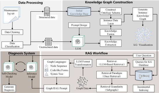 研究团队构建了一套包含四阶段的全流程诊断框架:数据预处理标准化多模态故障记录;基于大语言模型的自动化知识图谱构建,并通过提示工程融入领域知识;图编码和检索将知识图谱转化为结构化图嵌入,实现基于查询向量的精确子图检索;以及基于检索上下文的可解释故障分类与归因分析。该框架不仅显著提升了诊断准确性,更通过知识图谱实现了故障因果链的可视化与可验证,为铁路安全运维提供了可信任的智能决策支持。