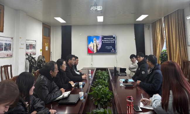 左剑教授长期从事建筑环境、绿色建筑技术及建筑业可持续发展领域研究,曾作为首席研究员参与多项澳大利亚研究理事会(ARC)资助项目,并承担多项国际及国家级科研项目。在交流环节,与会师生围绕中澳固废管理政策差异、建筑废弃物资源化路径以及研究成果在国内情境下的应用可行性等问题与左剑教授进行了深入讨论。左剑教授结合自身研究经历,分享了固废管理研究在国际学术界的发展趋势与未来方向,为学院师生在相关领域的科研选题与方法应用提供了有益启示。