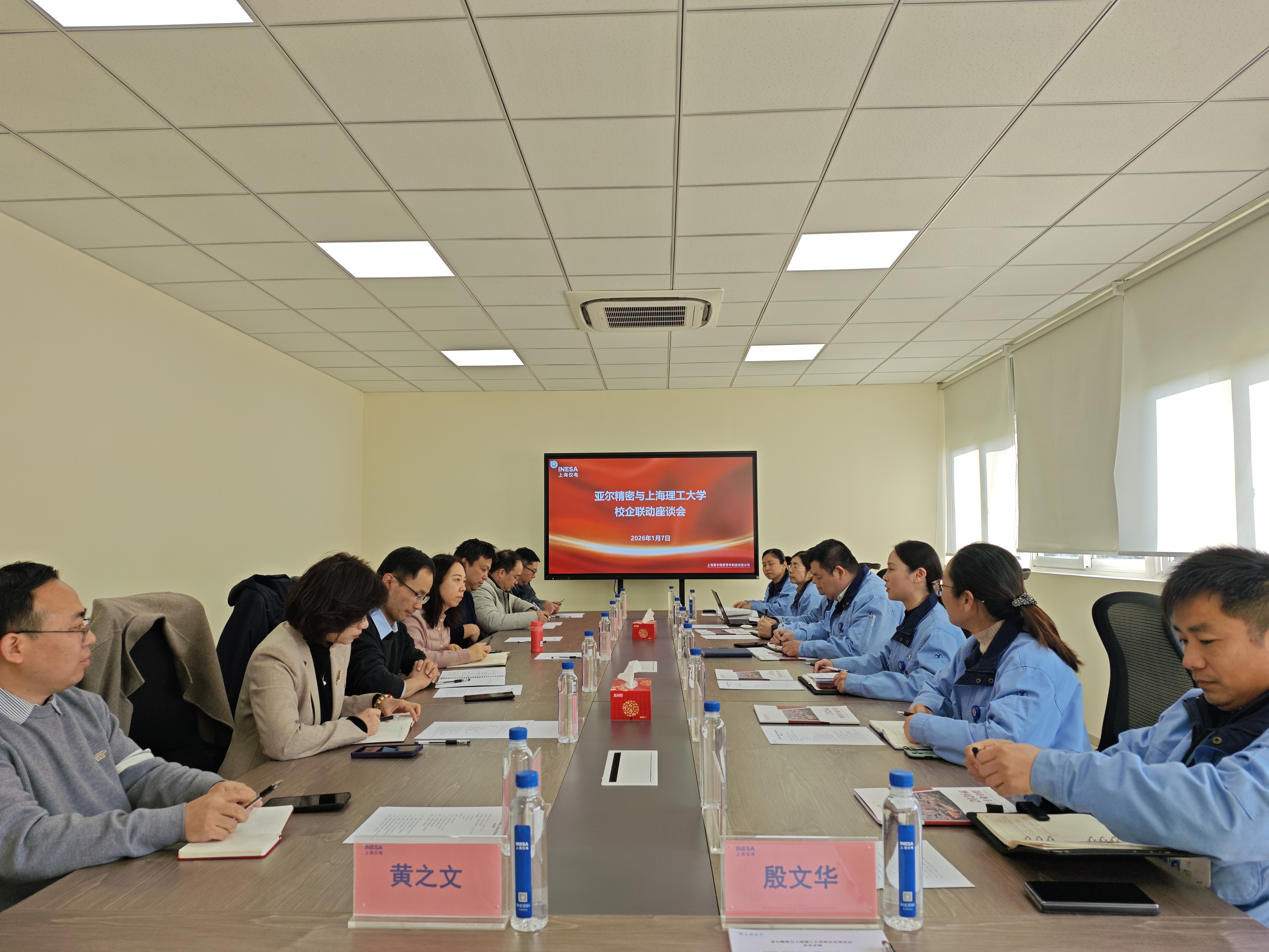 为深化产教融合、拓展校企合作空间,1月7日下午,光电学院、机械学院、学生就业指导中心等相关负责人、副院长、学生工作负责人、专业教师一行赴上海仪电集团下属上海亚尔精密零件制造有限公司(以下简称“亚尔精密”)开展访企拓岗、产学研合作交流,亚尔精密总经理王晓康,党总支副书记、工会主席王诗苑,副总经理、制造部经理邵俊,国外销售部经理、校友张锦云,人力资源部等人员共同参加座谈交流会。