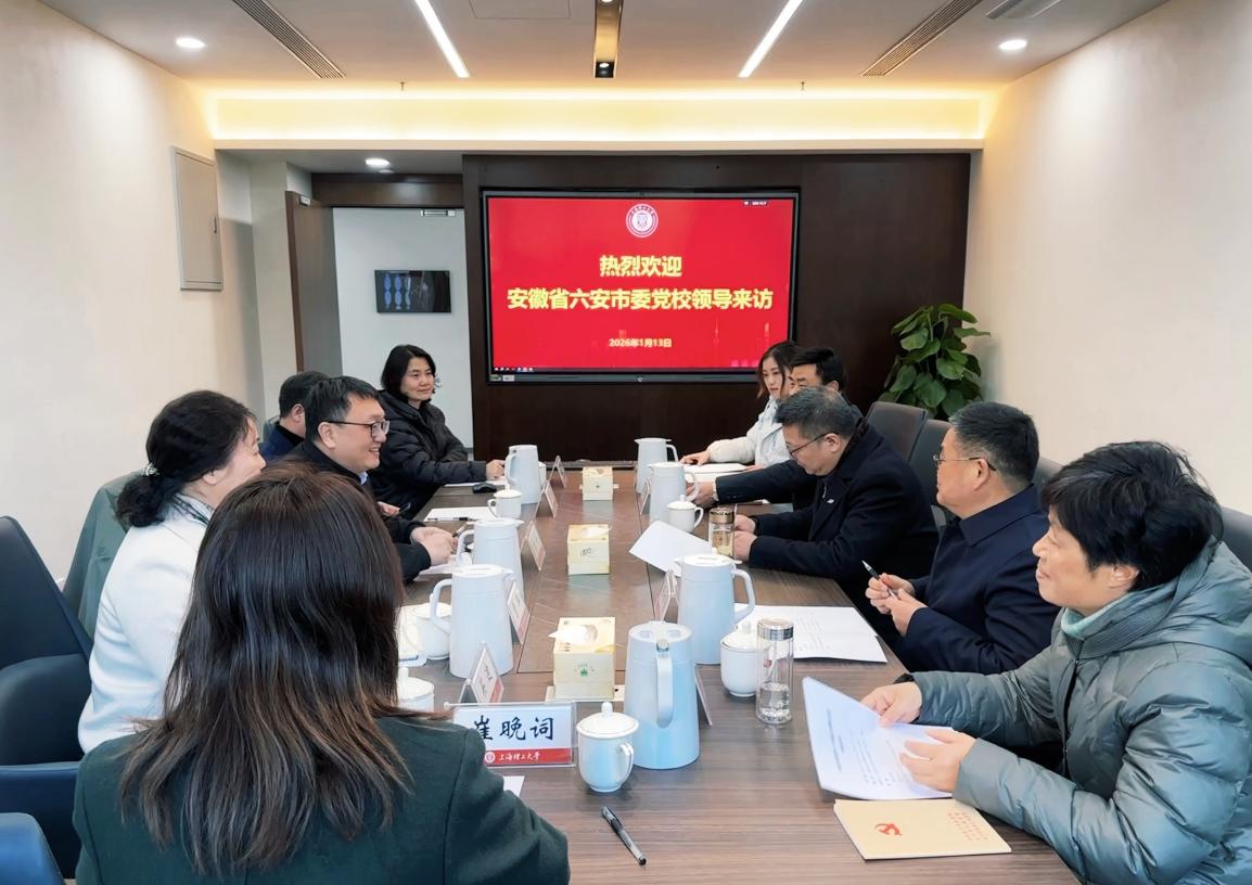 为深化校地对口合作、推进新时代上海市高校教师国情教育基地(以下简称“国情教育基地”)建设,1月13日上午,安徽省六安市委党校副校长汪明勇一行来访永利集团304am官方入口。校党委副书记贺莉亲切会见来宾,党委教师工作部、组织部和马克思主义学院等相关负责人陪同会见并参加座谈会。
