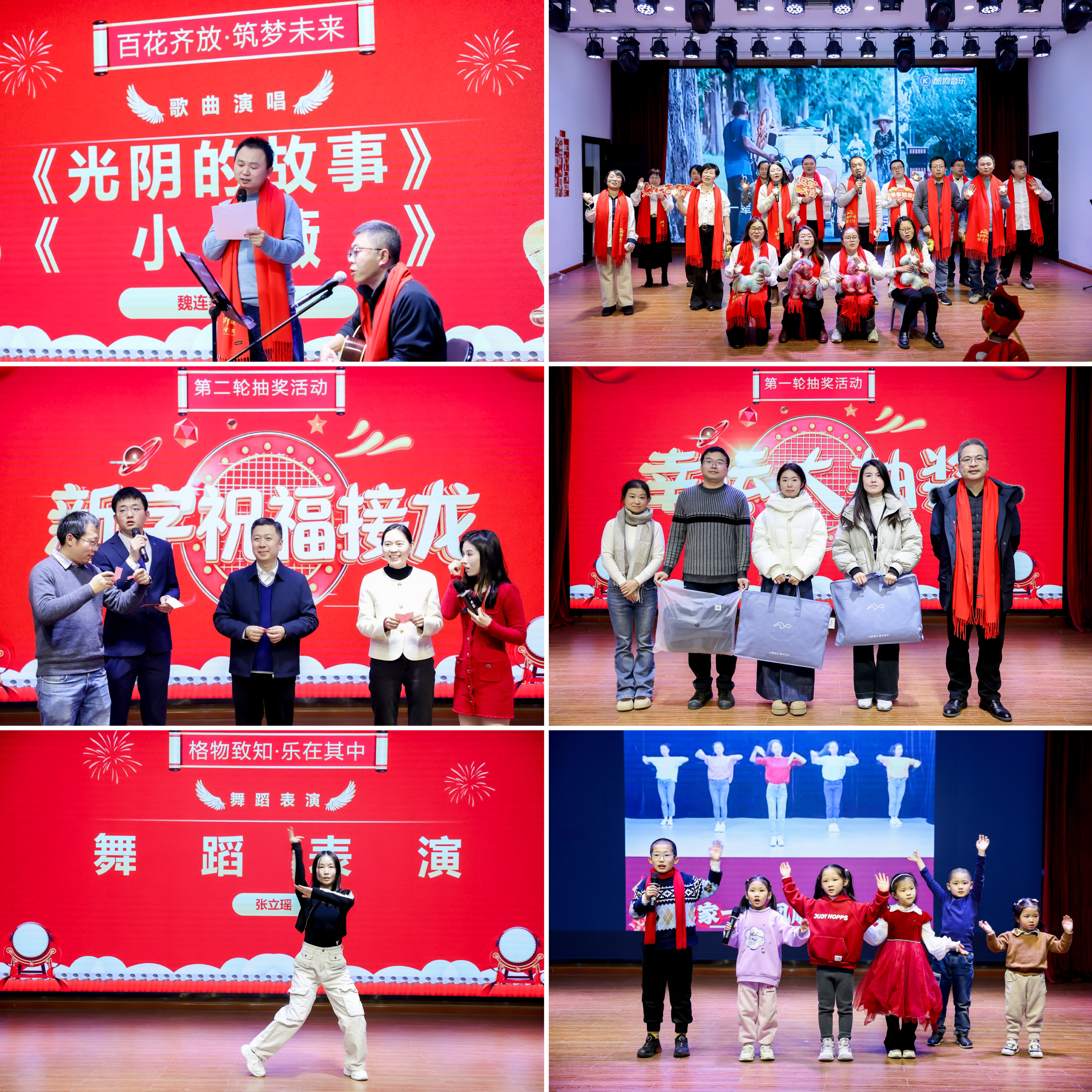 本次联欢会以“骏业崇光·薪火相传”、“格物致知·乐在其中”、“百花齐放·逐梦未来”三个篇章徐徐展开,将数理人的严谨雅致与文艺风采巧妙融合。节目形式丰富多元、亮点纷呈,歌舞、乐器、小品等佳作轮番上演。教职工及“理二代”们以饱满的热情登台表演,用灵动舞姿、婉转歌声、诙谐演绎展现出理苑大家庭的活力与激情,为现场观众呈现了一场精彩的视听盛宴。席间掌声、欢呼声此起彼伏,暖意与喜悦在空气中流淌。互动环节更是将现场氛围推向高潮。“新字祝福接龙”游戏中,大家紧扣新春主题各抒己见,一句句真挚祝福传递着对新年的期许;幸运抽奖环节惊喜不断,长白商会提供的丰厚奖品让好运与暖意交织,进一步凝聚了人心,彰显了理学院互帮互助、和睦团圆的大家庭氛围。