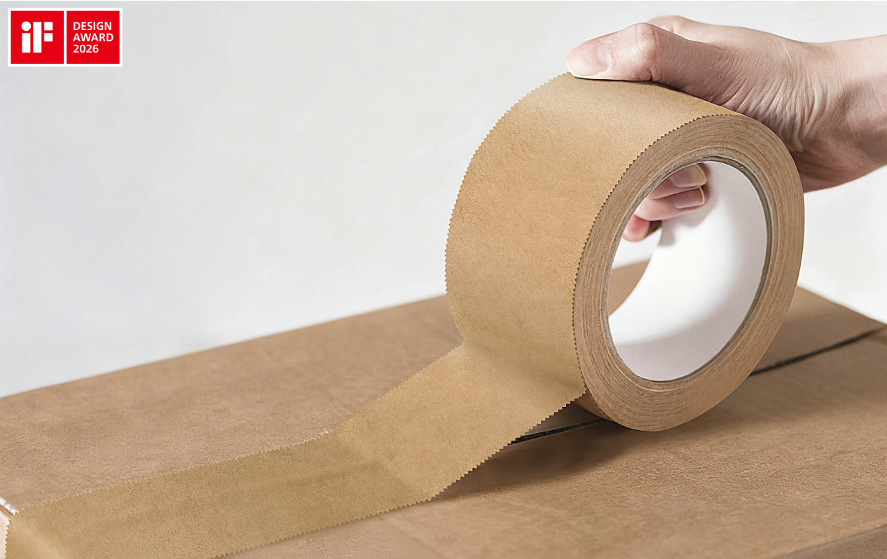 《齿边胶带》重新构想了包装胶带的基础体验。其连续的微锯齿边缘设计,使胶带无需借助切割器或剪刀即可徒手撕开,在保证密封强度的同时,支持任意方向轻松撕裂,使包装过程更直观、便捷。此外,产品选用纸质基材,可与纸箱一同回收,有效降低废弃物污染,提升回收效率。这一设计理念源于对封箱与开箱过程中常见“操作中断”痛点的深入观察。在仓储物流、零售终端或家庭搬运等场景中,寻找切割工具或费力撕扯胶带往往影响效率与体验。《齿边胶带》将解决方案融入产品形态本身,依托经典的物理锯齿结构与“易撕线”原理,提出一种无需技术介入、易于理解且普适可行的包装新方案。与传统的塑料胶带或仅在特定角度下易撕的产品不同,方案设计所集成的细密锯齿结构,既能引导撕裂路径顺畅展开,又避免了整条胶带出现应力薄弱点。即便在多条胶带交叉贴合的情况下,也能实现轻松剥离与撕断。该设计将原本繁琐的封箱操作转化为直观、高效且富有愉悦感的体验,不仅提升了用户操作效率,也显著降低了使用中的挫败感。