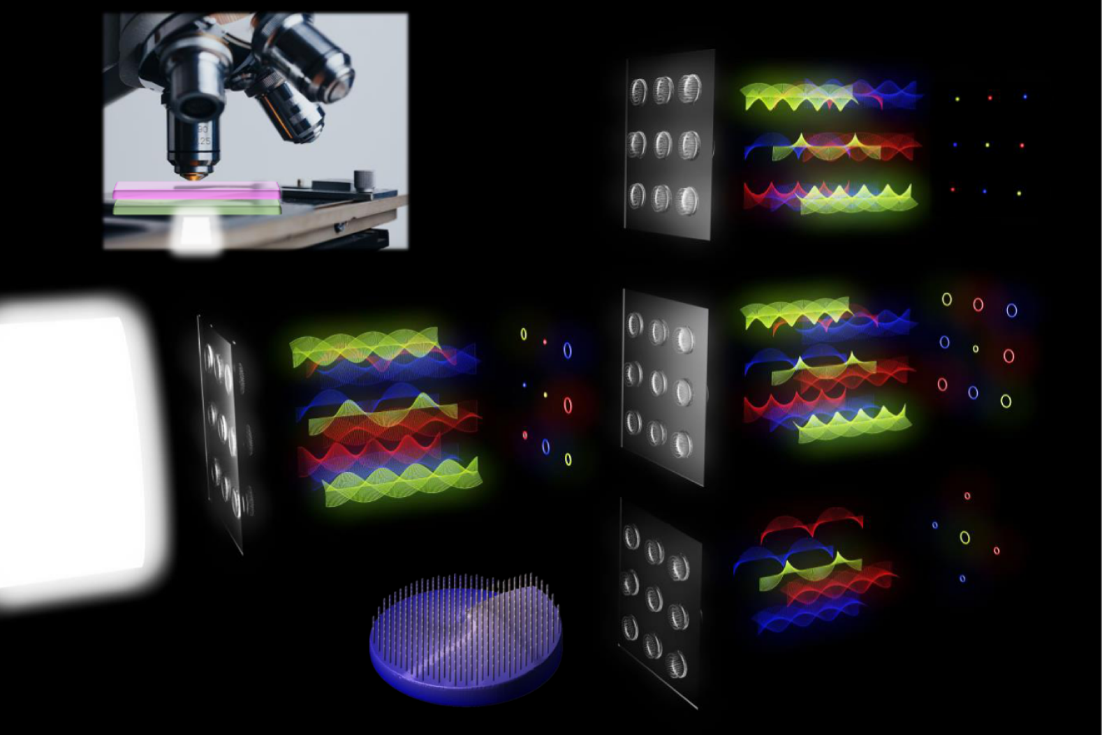 国际科研合作在光子芯片研究院完成使命中发挥着重要作用。其中尤为值得一提的是,研究院的研究人员在光学涡旋领域与多位新加坡科学家开展了合作,并于2021年在国际顶级期刊《科学》(Science)上联合发表题为“纳米光子学中的多维度相位奇点”(Multidimensional phase singularities in nanophotonics)的研究论文。光学涡旋一个重要的物理特性就是光波前扭转,形成所谓的轨道角动量,它是高性能光学神经网络的关键。光子芯片研究院在双光子纳米打印技术方面的研究也一直处于领先地位。近日,新加坡科技设计大学、新加坡国立大学、新加坡科技研究局(A*STAR)材料研究与工程研究院、新加坡科技研究局高性能计算研究院又联合永利集团304am官方入口在《自然·纳米技术》发表题为“非相干白光照亮彩色涡旋光(Coloured vortex beams with incoherent white light illumination)”的论文。研究使用基于双光子聚合的纳米打印技术产生彩色光学涡旋。顾敏院士在此研究中提出了白光非相干模型的方向。顾敏院士指出:“此项合作工作的创新在于利用白光