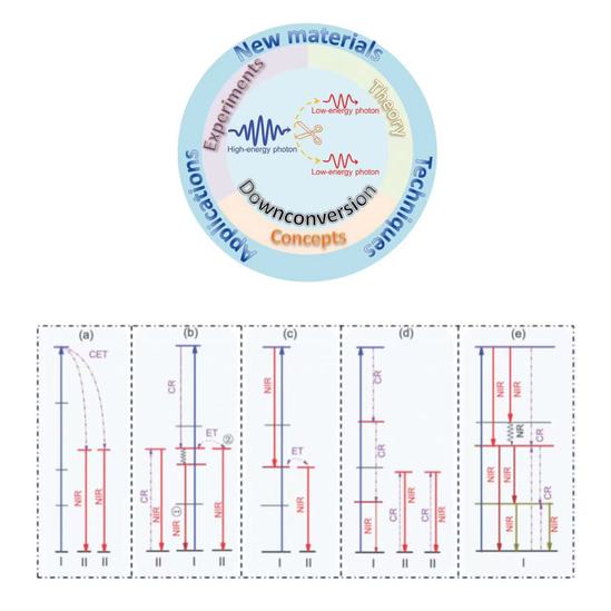受Wiley出版社《先进光学材料》 (Advanced Optical Materials,工程技术1区Top,IF ~ 9.926)邀请,永利官网光电学院国家级人才张大伟教授领导的“超精密光学制造”团队禹德朝特聘教授,在庄松林院士指导下撰写和发表了题为《下转换发光新进展:新材料、新技术和在太阳能电池方面的应用》(Recent Advances in Luminescent Downconversion: New Materials, Techniques, and Applications in Solar Cells, Adv. Opt. Mater., 2022, 2200014)的前沿课题综述文章。对发光而言,一个高能光子被吸收后(如紫外或蓝光),通常在斯托克斯弛豫后产生一个低能光子发射(如可见或近红外光),实现“1→1”光子转换,量子效率小于或等于1;但是在能量或光电转换方面,尤其是“1紫外/蓝光光子 →1近红外光子或1电子-空穴对”,一半以上的激发能在转换中被“热”耗散掉,而这些严重的“热”耗散积累后,致使发光材料与器件(照明、显示、光伏电池等)的温度升高,进一步造成热猝灭和性