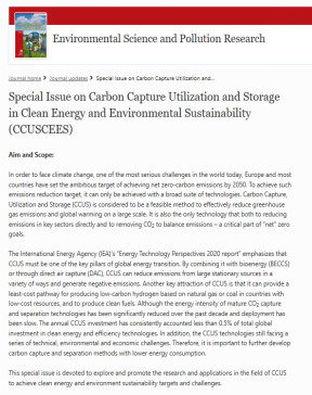 近期,环建学院环境系副教授史焕聪出任SCI期刊《环境科学与污染物研究》(Environmental Science and Pollution Research)的《碳中和专刊》(Special Issue on Carbon Capture Utilization and Storage)客座主编(Guest Editor)。史焕聪从事碳捕获利用与封存(CCUS)科学研究10多年,专门负责碳减排技术的开发。他累计发表SCI论文40余篇,公开专利3至4项,获得国家级省部级项目多个。在碳中和、碳减排领域,拥有多年的基础研究、工程实践和项目运营经验。他2017年在环境科学顶级期刊《环境科学与技术》(Environmental Science and Technology)发表论文,为环建学院实现零的突破。多年的科研工作和论文发表成果,使他具备出任SCI期刊编辑的能力。《环境科学与污染物研究》(Environmental Science and Pollution Research)是SCI三区期刊,常年专注于环境科学、环境污染物分析,环境技术领域的研究和发现。史焕聪主持的《碳中和专刊》,特