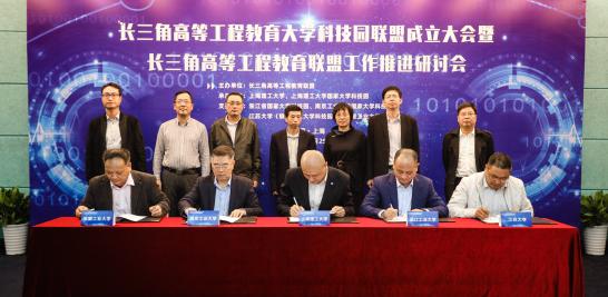 10月25日,由长三角高等工程教育联盟5所高校共同发起的长三角高等工程教育大学科技园联盟在永利官网成立,长三角高等工程教育联盟工作推进研讨会也于当日举行。校长丁晓东、安徽工业大学副校长水恒福、上海市教委科技处处长许开宇、上海市发改委长三角一体化发展处副处长吕军焘等出席成立仪式,来自联盟高校教务处、科技处、科技园等相关部门的负责人,共同探讨如何推动创新资源集成、科技成果转化、科技创业孵化、创新人才培养等话题。丁晓东在致辞中指出,在长三角区域中,上海作为特大型城市要发挥龙头作用,而发挥龙头作用关键在科技创新,促进科技成果转化为推动产业发展的“第一生产力”,是科创工作中需要重点解决的课题,联盟5所高校将以成立长三角科技园联盟为起点,通过开放与合作,成为助力长三角产业技术升级的重要力量。他表示,在长三角一体化发展的国家战略背景下,我们将大有可为,更要大有作为,希望通过此次研讨,各校能进一步推进相互之间更深入、更务实的合作,培养更多优秀人才、输出更多科创成果,为引领和助力长三角经济社会发展做出应有的贡献。安徽工业大学副校长水恒福简要介绍了近年来安工大在产学研合作、教师科技成果转化、学生创新创业教育等