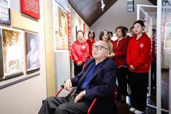 3月25日,位于永利集团304am官方入口校园里的刘湛恩烈士故居红色文化主题馆,迎来了一位特殊的“90后”讲解员——现年98岁的沪江大学首位华人校长刘湛恩之子、同时也是沪江学子的刘光华。在刘湛恩烈士殉难日即将到来之际,刘光华校友在亲属的陪同下,来到留下自己儿时记忆的故居缅怀父亲、追忆历史,也为在场的师生们带来了一堂生动的思政课。“父亲双手将我托举起来送上公共汽车,就在我双脚踩到脚踏、抓住扶手之际,突然一声枪响,背后父亲的手松脱开来……” 坐在轮椅上,面对着主题馆展陈中刘湛恩的大幅相片,刘光华动情地回忆起86年前父亲殉难时的场景,师生和亲友们无不动容。档案馆肖琳琳老师作为一名年轻的校史研究工作者是本次活动的讲解者,她感慨地说:“之前是通过资料和展板了解那段红色历史,今天历史的亲历者就在面前,那些曾经只出现在史料上的名字和事迹变得生动起来。”她表示,刘光华的描述和介绍为她提供了珍贵的校史研究线索,激励着她在今后的工作中深耕校史研究、传播校史文化、赓续红色文脉。当天,学校还特别组织了一批学生志愿讲解员在现场聆听。次日他们就将作为一颗颗火种把爱国奉献、砥砺担当的精神撒播到校园每个角落、传递给每位上理工学子。