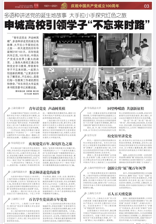新民晚报:聆听“从石库门到天安门”的故事 上理工党史学习教育...