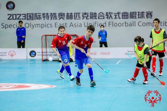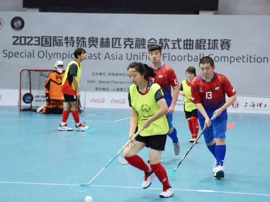 11月3日,2023国际特殊奥林匹克融合软式曲棍球赛在永利集团304am官方入口开赛。本次比赛不仅男女混搭,而且每支队伍由3名特奥运动员和2名融合伙伴组成。赛场上,来自东亚各国的特奥运动员和融合伙伴同场竞技,共同享受运动的快乐,感受软式曲棍球的“速度与激情”。本次比赛由特殊奥林匹克组织主办,永利集团304am官方入口承办,旨在增加大众对特奥运动的关注度,并提高参与度。赛事从11月3日开始,为期三天。共有来自韩国、印尼、蒙古、中国香港以及上海、杭州、黑龙江等8支队伍参与两个组别的冠军角逐。软式曲棍球是国际特殊奥林匹克冬季运动会的一项正式比赛项目。作为特奥运动中不可分割的重要部分,特奥融合运动由智力障碍与非智力障碍人士(即融合伙伴)共同组队,一同训练和竞赛,使特奥运动员与融合伙伴在共同训练中相互切磋来提高技能,增进沟通,从而为特奥运动员们提供更多的选择与机会。本次比赛是特奥东亚区首次在国内组织的融合软式曲棍球赛。“特殊奥林匹克致力于为智力障碍儿童和成年人常年参与奥林匹克式的体育训练及比赛创造条件和机会,使他们发挥潜能、勇敢表现,在参与中与其他运动员、家人和公众分享快乐,交流技艺并增进友谊。”国际特殊奥林匹克东亚区域总