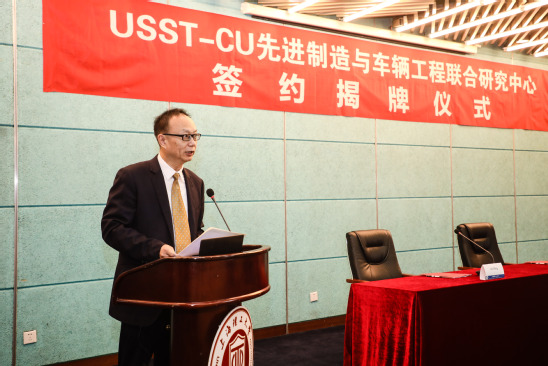 10月17日上午,永利集团304am官方入口与英国考文垂大学(CoventryUniversity)在图文信息中心第一会议室举行了“USST-CU先进制造与车辆工程联合研究中心”签约与揭牌仪式。副校长刘平教授、考文垂大学副校长RichardDashwood教授出席仪式。考文垂大学未来交通与城市研究所负责人、工程环境与计算机学部负责人等6名教授代表考文垂大学前来参加,国际交流处、宣传部、研究生院、科技处、管理学院、出版印刷与艺术设计学院相关负责人、机械工程学院车辆工程负责人及部分师生参加仪式。仪式由机械工程学院院长李郝林教授主持。刘平副校长致欢迎词,他高度肯定了双方此次交流合作的意义,指出联合研究中心的建立必将进一步推动永利官网高水平大学建设。RichardDashwood副校长表达了对双方后期合作研究的期待,并对考文垂大学整体情况进行了介绍。刘平副校长、RichardDashwood副校长分别代表双方学校共同签署了共建“USST-CU先进制造与车辆工程联合研究中心”协议,并为研究中心揭牌。随后,李郝林院长向在座师生介绍了双方联合培养博士生项目,考文垂大学未来交通与城市研究所所长CarlPerrin教授就