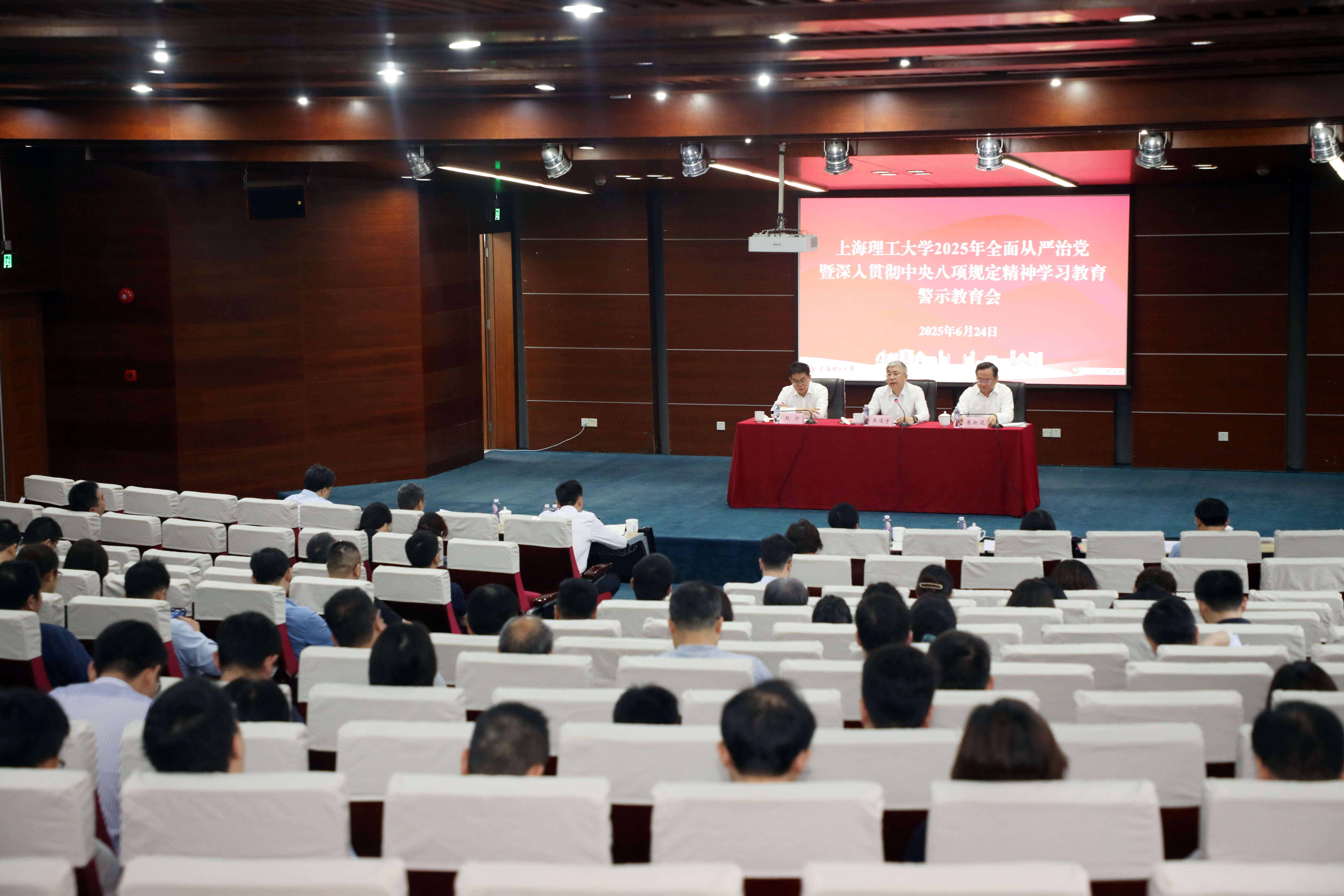 6月24日上午,永利集团304am官方入口2025年全面从严治党暨深入贯彻中央八项规定精神学习教育警示教育会在图文信息中心报告厅召开。校党委书记王凌宇部署2025年学校全面从严治党工作,校党委副书记、纪委书记、市监察专员赵宁通报2024年监督执纪情况,部署2025年纪检监察工作,会议由校党委副书记、校长朱新远主持。学校党政领导班子成员、中层干部、学校纪委委员参加会议。王凌宇指出,要学深悟透习近平总书记关于加强党的作风建设的重要论述和中央八项规定及其实施细则精神,进一步深化对加强党的作风建设重要性和紧迫性的认识。他结合学校近年来查处的典型案例和巡视巡察发现的问题,对当前学校在思想作风、学风、工作作风、师德师风