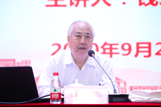 为深入开展“党史、新中国史、改革开放史、社会主义发展史”学习教育,学习贯彻习近平总书记在科学家座谈会上的讲话精神,激励全体师生以更加昂扬的精神状态投身高水平大学建设,9月23日上午,学校召开校、院(机关)两级中心组(扩大)学习报告会,邀请人民科学家钱学森之子、上海交通大学钱学森图书馆馆长、中国航天钱学森决策顾问委员会主任委员、西安交通大学钱学森学院荣誉院长钱永刚教授,为全校600余位师生作“钱学森科技报国的圆梦历程”四史专题辅导报告。全体在校校领导、中层干部、机关科级干部、教工党支部书记、辅导员、教师代表、学生代表参加报告会,党委书记吴坚勇主持会议并讲话。钱永刚以钱学森一生中的5次重大选择为主线,介绍了钱学森为民族振兴和国家昌盛而求学、投身科学研究事业,以及奋力铸就国之重器,成为“中国航天之父”“中国导弹之父”“中国自动化控制之父”的光辉历程。他认为,钱学森以国家的需要作为自己的选择,义无反顾把毕生精力贡献给了中国航天事业,推动中国航天从无到有、从小到大,并跻身世界航天大国之列。随后,他梳理了钱学森晚年在多个学术领域提出的新思想、新理论:以大系统的视角,对科学技术进行了新的解读,成为我