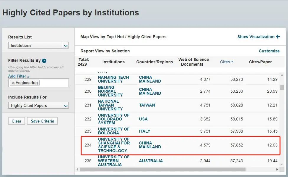新突破!上理工工程学学科新晋ESI全球前1‰!