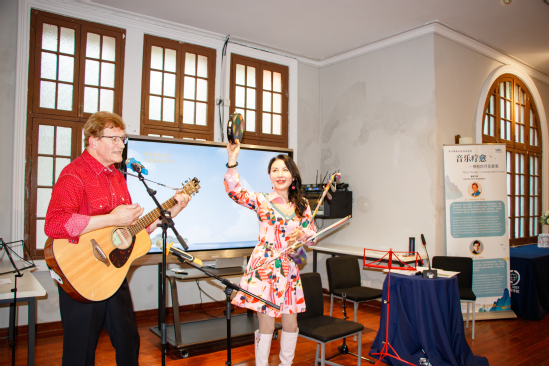 4月20日下午,中英国际学院在复兴路校区茶室举办“音乐疗愈——拥抱四月在爱里”复兴雅韵名家讲坛。著名二胡艺术家、教育家、跨界艺术领军人物、海派音乐家、中英国际学院荣誉教授、复兴晖音工作室创始人、上海宋庆龄基金会马晓辉文化艺术专项基金发起人马晓辉教授,著名美国心理学教授、临床心理医生、圆和健康中心行为健康中心主任、吉他弹唱手蒂姆·凯利(Tim Kelly)教授,医疗健康管理博士、高级中医理疗师、高级儿童康复评估师苏振教授做客讲坛。学院党委副书记、副院长蔡卉,辅导员以及热爱音乐的同学们参加讲坛。讲座伊始,马晓辉和凯利通过几段音乐与心理科学创意的阐述及对话,展示了音乐与二胡艺术对心理疗愈的独特功效。音乐是先于语言的存在,它是一种能够增进彼此感情、感触心灵的方式方法,是一种极其重要的疗愈工具。坚持学习音乐、聆听音乐的同学,在学习和考试中会更加自信自在、得心应手地应对挑战。音乐疗愈之法——现场解压大家跟随着马晓辉的节奏和步调,在悦动的音乐世界里遨游。在这美好的疗愈解压过程中,认识了深呼吸吐气15秒钟等音乐疗愈解压方法。通过现场呼吸解压训练,学习到如何在极度紧张、焦虑、失眠的情况下,运用呼吸舒缓情