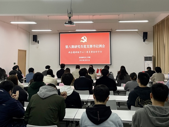 学校创建全国文明校园的战鼓已经擂响,为了引导广大研究生党支部先行先闯,进而带动全体研究生人人参与,3月21日,以“学习两会精神 共创文明校园”为主题的第八期研究生党支部书记例会在老图书馆412会议室开展。68个研究生党支部、研究生党员代表及研究生党支部书记联合会全体成员参加。与会人员共同重温了习近平总书记在十四届全国人大一次会议闭幕会上的重要讲话,深入学习全国两会精神。大家纷纷表示要不负韶华、接续奋斗,要把学习贯彻两会精神落细落小落实到创全的具体现实中。党支部书记联合会会长赵子旋向全体研究生党支部提出“三个一”倡议:开展一次关于创全的主题党日活动;进行一次“校内红色资源”寻访学习活动;组织一次创全志愿服务活动,通过发挥支部书记带头作用,带动支部成员以及身边同学积极投身于创全工作中。各研究生党支部书记代表围绕“我关注的两会提案”以及两会精神融入研究生基层实践、人人参与创全工作作交流发言。马院第一支部书记吴玥彤就“用好用活红色资源”展开分享,外语学院英语语言文学研究生党支部副书记代俊璇就两会期间全国人大代表张天任、李君的相关提案进行分享,健康学院食品科学与工程学生第二党支部书记李染青认为,