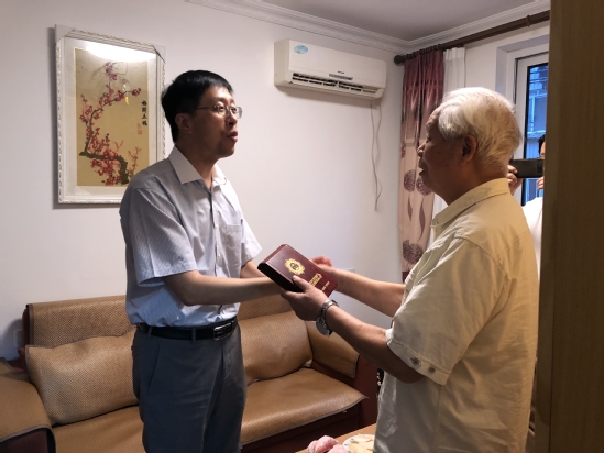 校领导为老干部发放“庆祝中华人民共和国成立70周年纪念章”