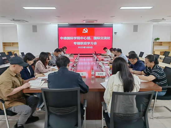 5月8日下午,中德国际学院党委与国际交流处党支部以“深化作风建设,推动国际化办学高质量发展”为主题开展联组学习。中德国际学院领导班子成员及理论学习中心组成员、国际交流处党支部全体党员参加会议。会议由中德国际学院党委书记范正飞主持。中德国际学院党委书记范正飞领学《习近平关于加强党的作风建设论述摘编》第六专题“各级领导干部要带头转变作风,身体力行,以上率下”,他谈到,要将作风建设深度融入学院发展每一处脉络,以身作则,引领学院在教育强国建设中勇担使命,充分发挥学院优势,将德国先进的工程教育理念与中国高等教育体系相结合,打造具有竞争力的卓越工程师培养模式;要积极应对国际形势,坚定信心,以扎实作风推动学